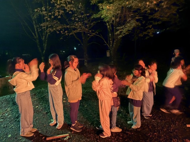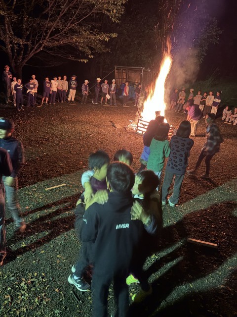 【10/15 川場移動教室(20)】キャンプファイヤーの様子「猛獣狩り」