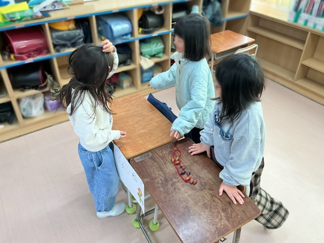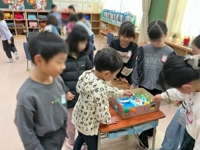 12月23日にどんぐりを使ったおもちゃ・作品で遊びました。子どもたちは、作る段階から工夫しながら一生懸命取り組み、完成したおもちゃで楽しそう遊ぶ姿が見られました。他のクラスのおもちゃや作品にも触れながら、楽しい時間を過ごしました。