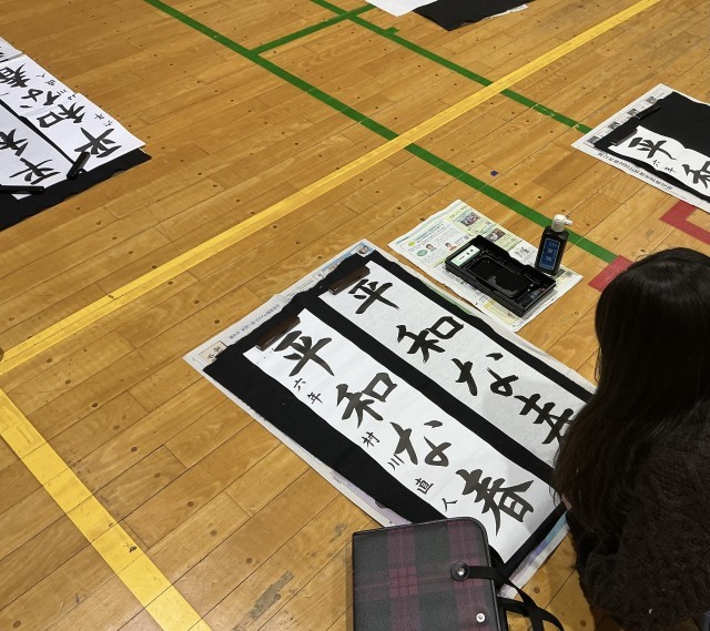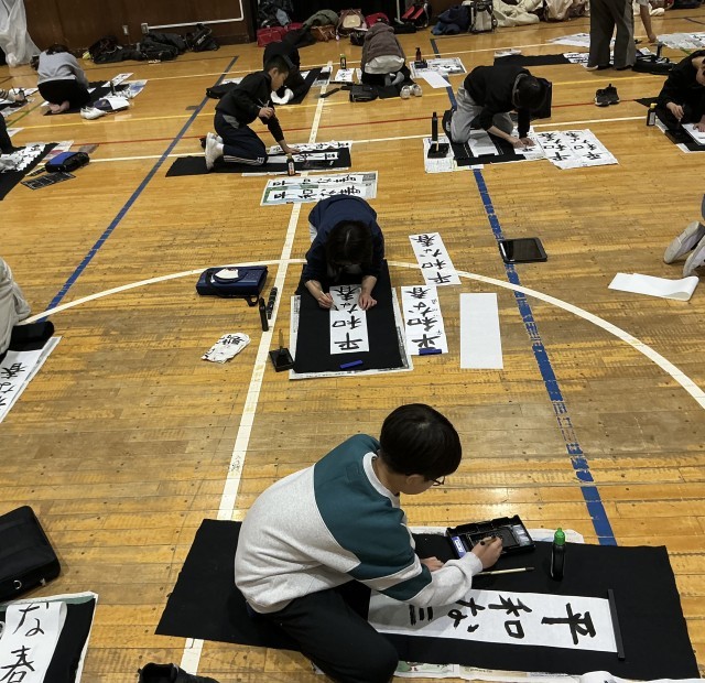 3、4時間目は学年で書き初めに取り組みました。一文字一文字に思いを込めて、集中して筆を進めました。