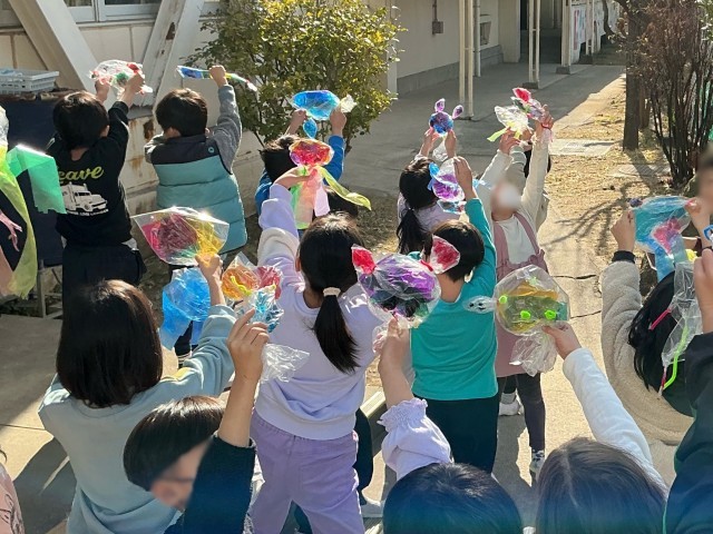 図工の時間に「ひかりのくにのなかまたち」をしました。動物をテーマに、どのような色を組み合わせるときれいに見えるかを考えながら、一人一人が楽しんで取り組む姿が見られました。天気にも恵まれ、完成した作品を太陽の光に当てると、どれもとても輝いて見えました。