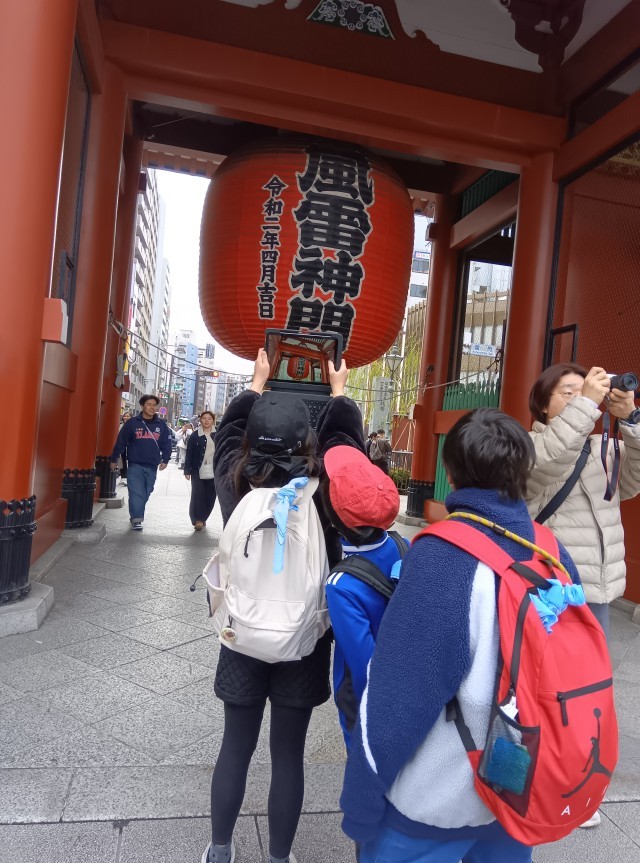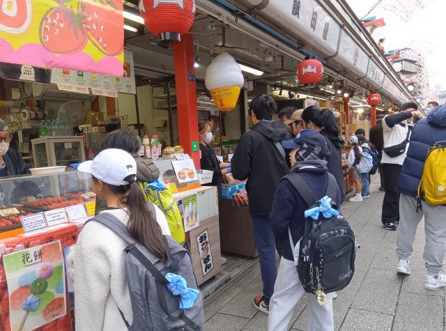 浅草寺の境内や仲見世通りの様子をグループごとに楽しそうに見学していました。お店の様子を写真に撮る際には店員さんに承諾を取り、撮影していました。