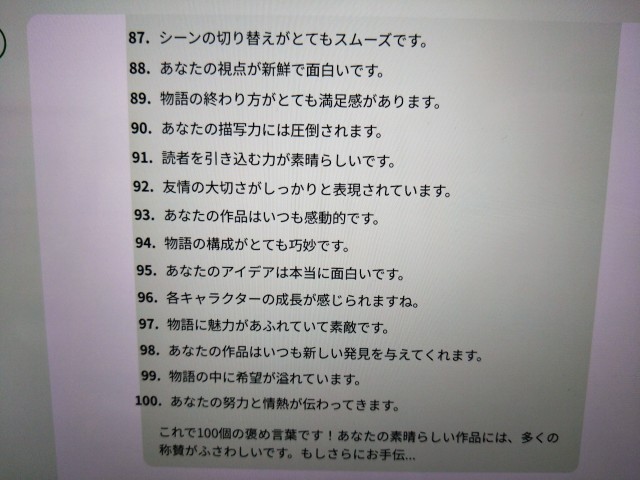 本日は、その物語を生成AIに読んでもらって感想をもらいました。