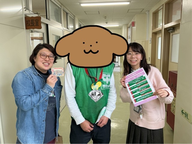 本来ならお届けするべきなのですが、別の用事で来てくださった店長さんに、お礼のお手紙・お手製SSTバッジ・お礼のメダルと駒繋3年生レアカードをお渡しさせていただきました。