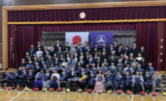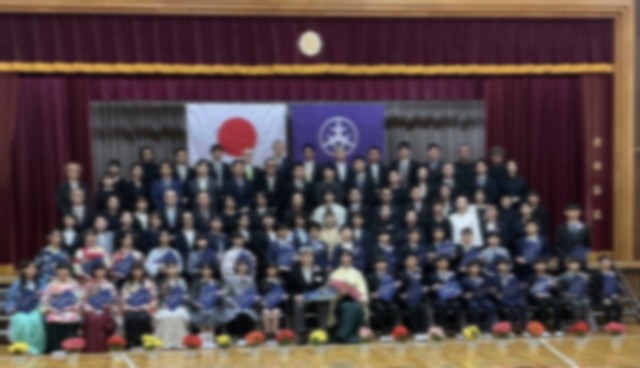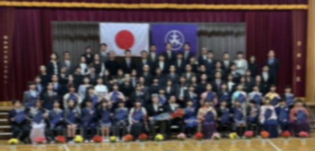 緊張の面持ちで入場する6年生。証書授与では真剣な表情。その空気が体育館を包みました。