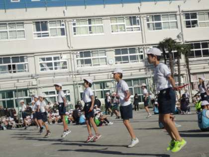 時間とび、二重とび、はやぶさ、むささび、三重とび、メドレーリレー、大縄とびの種目に技を競いました。同窓会の方々はじめ、地域の方々、保護者の方々など400人を越える方々の心温まる応援がありました。本当にありがとうございました。