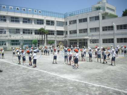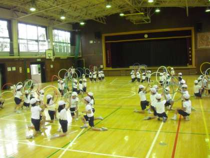 2年生は運動会の表現演技で,フラフープを使ってオリジナルダンスを踊ります。毎日本番に向けて,頑張って練習しています。いろいろな技が出てきてかっこいいです。またポケットモンスターのオープニング曲に合わせて踊る姿はとてもかわいいです。頑張って練習した成果をぜひご期待ください。