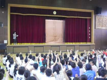 6月11日(水)に,6月の児童集会がありました。幕の間を素早く通り抜けるモノを当てる「物当てクイズ」がありました。児童集会委員が工夫をして,10問のクイズでみんなを楽しませました。