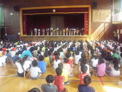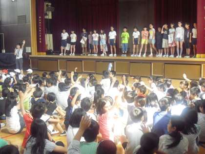 6月19日(木)に,図書委員会による読書集会が体育館で開かれました。図書委員は,図書室の使い方について,クイズ形式で学校のみんなに呼びかけたり,おすめの本を紹介したりしました。