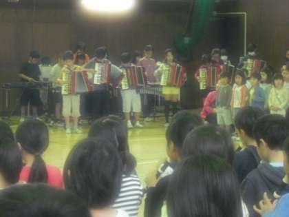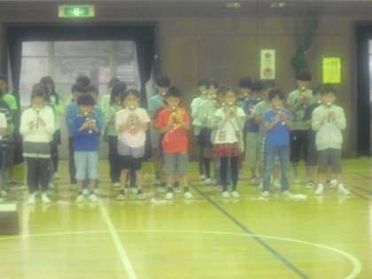 10月21日(火)に,音楽集会がありました。3年生が練習したリコーダーの曲を発表し,他の学年から大きな拍手をうけることができました。また,5・6年生の後期音楽委員会にとっては,初めて自分たちで演奏をする集会になりました。休み時間に練習を重ねた成果を披露することが出来ました。