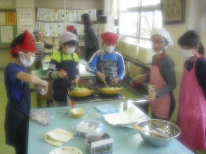 12月10日(水),5年生の調理実習「チャーハングランプリ」2日目は,5年1組です。海苔やイクラ・キムチを入れるなど具材を工夫したり,玉子の投入タイミングが違ったり。いろいろなチャーハンができ上がり,美味しく食べられました。