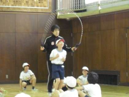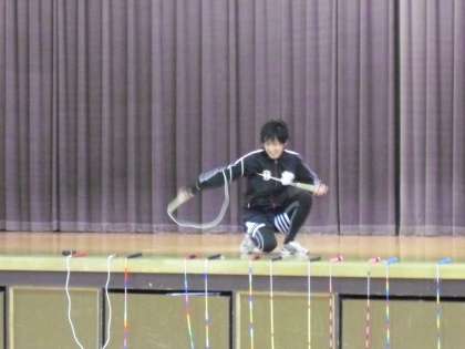 2月17日(火)に,「ロープパフォーマンス チーム小助」の生山ヒジキさんをお招きしました。昨年に続き,朝に全校児童を対象にしたパフォーマンスを,1時間目から6時間目までは各学年のご指導をしていただきました。今日のご指導で,なわとび検定の技を合格した児童もいました。