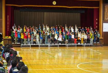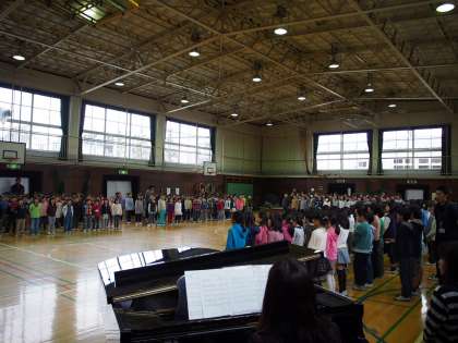 全員で歌った校歌は、体育館中に響きました。
