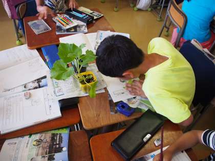 よく見て、観察カードに様子を絵や文章でかいています。
