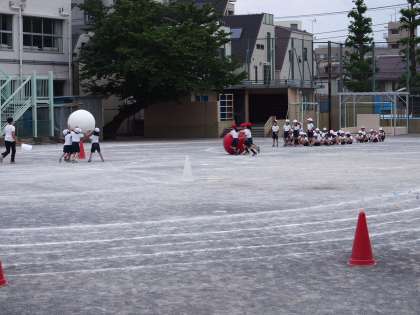 運動会の練習 大玉ジグザグ 2年