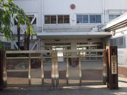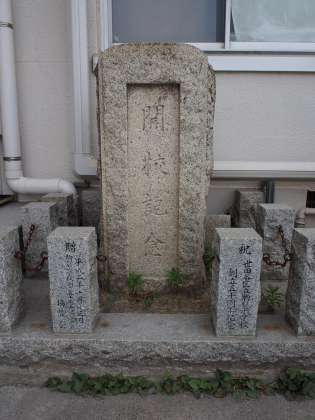 写真は、駒繋小学校正門(上)、開校50周年記念碑(中)、校名由来の駒繋神社(下)