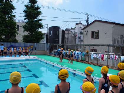 1年生にとっては、小学校のプールに入るのは初めてです。