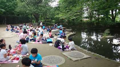 午前中の見学は、予定どおりできました。次太夫堀公園でお弁当です。午後は、世田谷市場を見学します。