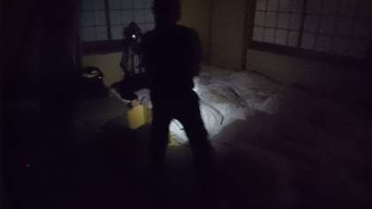 外の肝だめしコースを行くはずでしたが、大雨警報と洪水注意報、雷注意報のため、宿舎内で行いました。