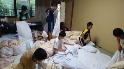 起きたら、体温を計り、寝具の片付け、身支度です。