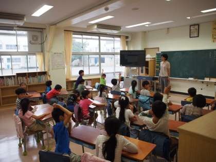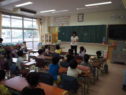 1・2年生の教室をのぞいてみると、新しくなった教室で、今日の予定を聞いたり、夏休みの思い出を話したり、係を決めたりする様子が見られました。
