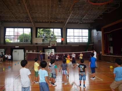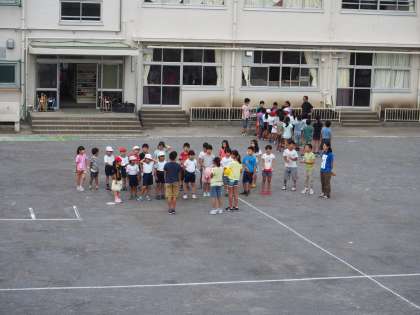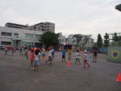 6年生の班長を中心に、校庭、体育館、屋上、教室に分かれて活動しています。