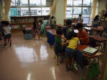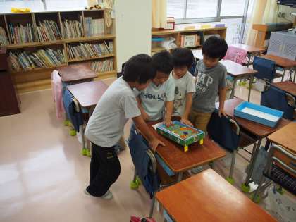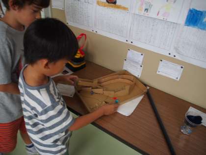 夏休みの自由研究の作品が、いい遊び道具となっています。