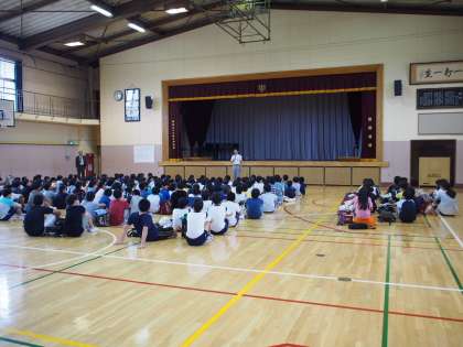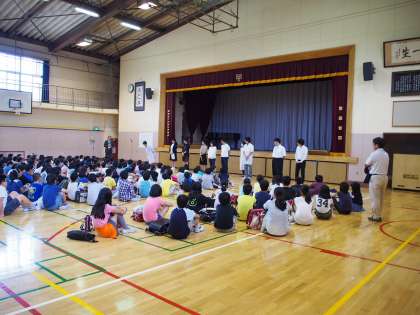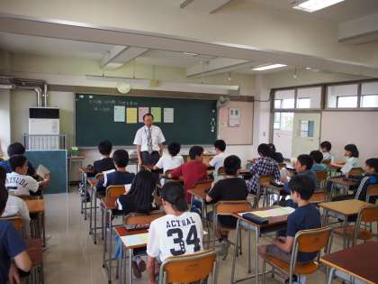 校長先生のお話を聞いた後、指導してくださる中学校の先生を紹介していただきました。