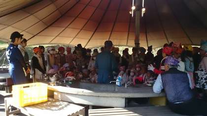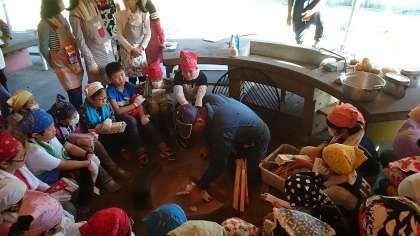 カレーの作り方、飯盒でのご飯の炊き方、かまどの使い方、片付け方を教わりました。
