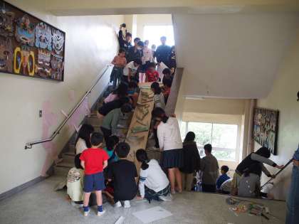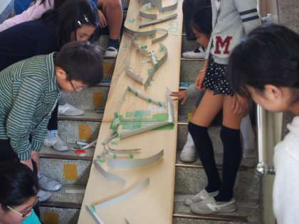 階段を使って、大きな大きなビー玉ゲームを作りました。