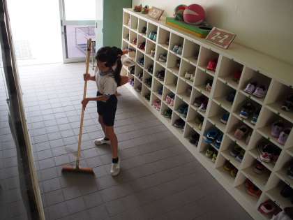机の中を整理したり、机・椅子の足のテニスボールについているごみを取ったり。