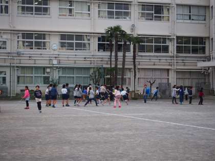 来週土曜日(12日)のなわとびコンクールに向けて、長なわの朝練が始まっています。