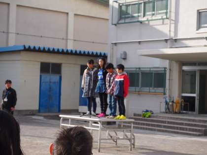 校長の話の後、連合運動会や水泳記録会で活躍した6年生の紹介がありました。