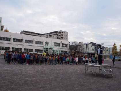 2学級いないと、並ぶ子供たちの列も寂しく感じます。