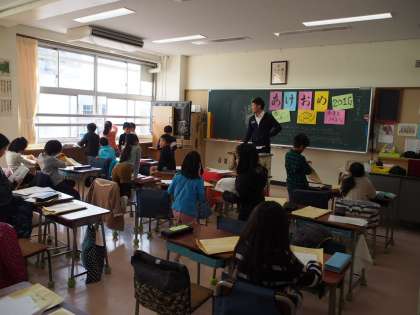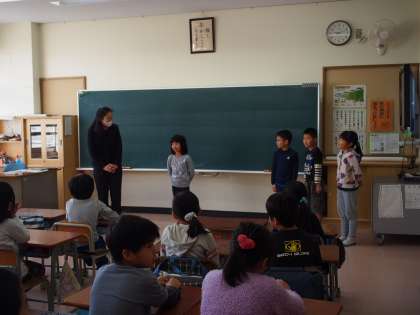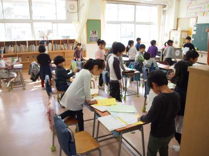 冬休みの課題を提出したり、冬休みの思い出をスピーチしたりしています。