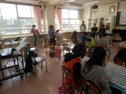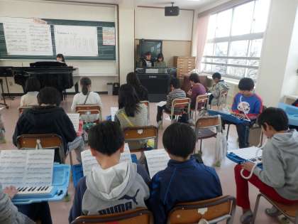 歌詞の内容や曲の雰囲気を感じ取り、互いの音色を聴き合って表現することを目指します。