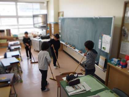 朝の時間を使って、机や椅子、教室内をきれいにします。