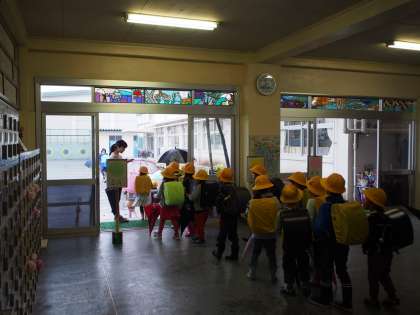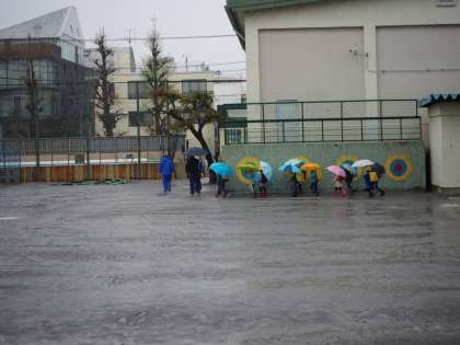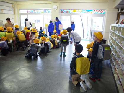 1年生は、はじめのうちは、方面別に並んで帰ります。