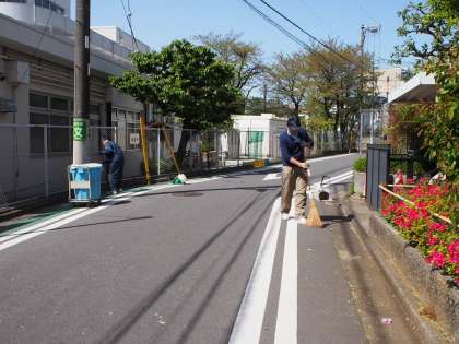 学校の周りの道路も、主事さんが掃除をしています。