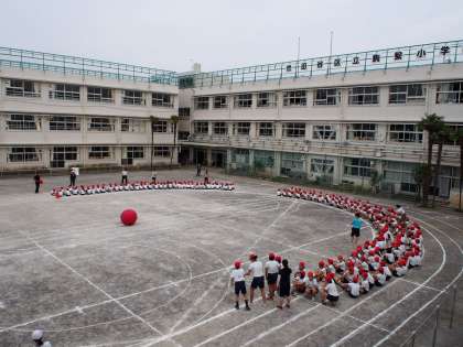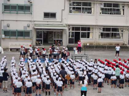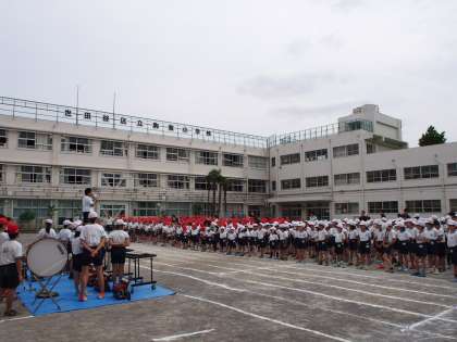開閉会式の整列の隊形、運動会の歌、準備運動、大玉送りの練習でした。