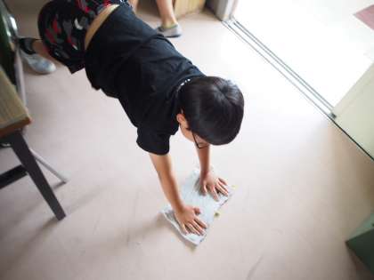 今日の朝の時間は、朝清掃でした。