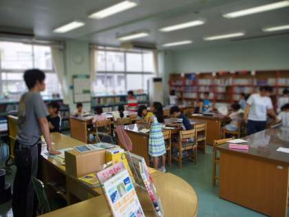 図書室で読書した後、夏休み用に本を借ります。