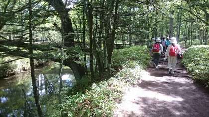 スタートして30分、赤沼で休憩と集合写真撮影です。