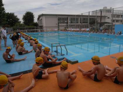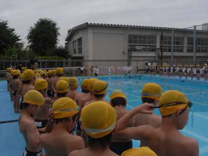水泳指導が始まりました。今日は1・2年生のプール開きでした。