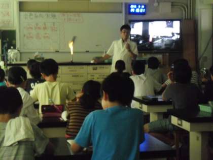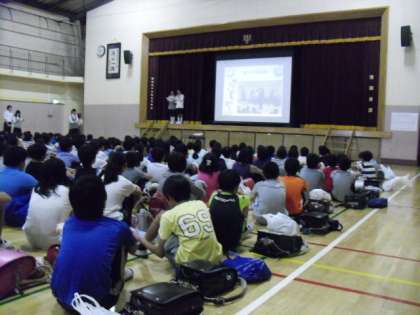 体験授業の後は、中学校の生徒会の人から、中学校の生活についてお話を聞きました。
