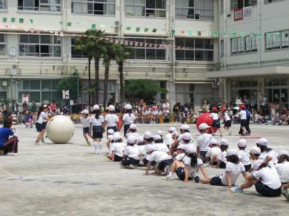 6月5日(土)2年生は、大玉ころがしにちょうせんしました。白熱した戦いの後に,赤が勝ちました。