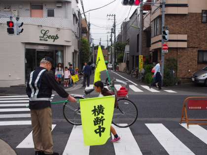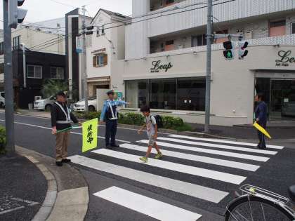 地域の方や警察の方も、児童の登校を見守ってくださっています。