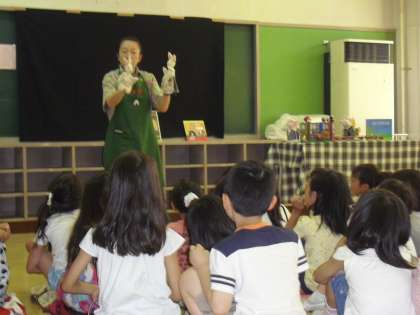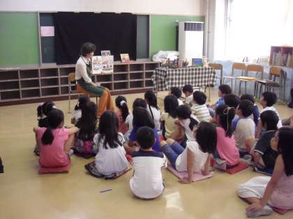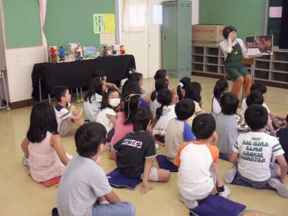 下馬図書館のご協力で2年生がお話会をしていただきました。お話にはお人形さんも登場し、子どもたちは静かに耳をかたむけていました。