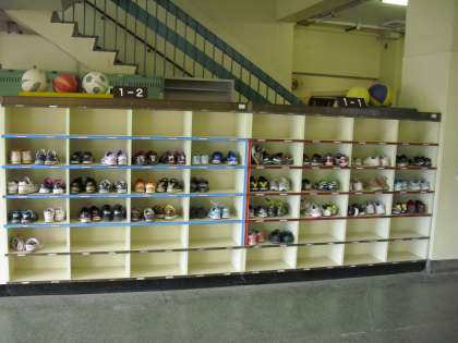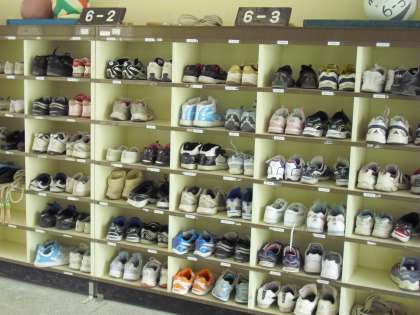 体育集会後のそれぞれの昇降口のくつ箱の様子です。「はき物の乱れは心の乱れ、はき物がそろえば心もそろう」とか言います。写真を見てのご感想はいかがでしょうか。