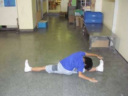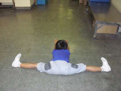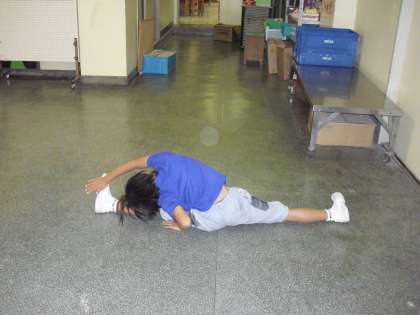 休み時間にろう下で見かけました。確か1年生だと思います。「すごいね」と声をかけると色々とポーズをしてくれました。私には絶対できません。うらやましいの一言です。