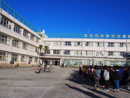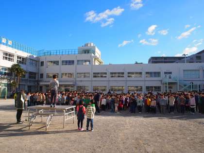 百人一首大会の入賞者の紹介、バスケットボールチームの表彰に続いて、1年生のスピーチがありました。